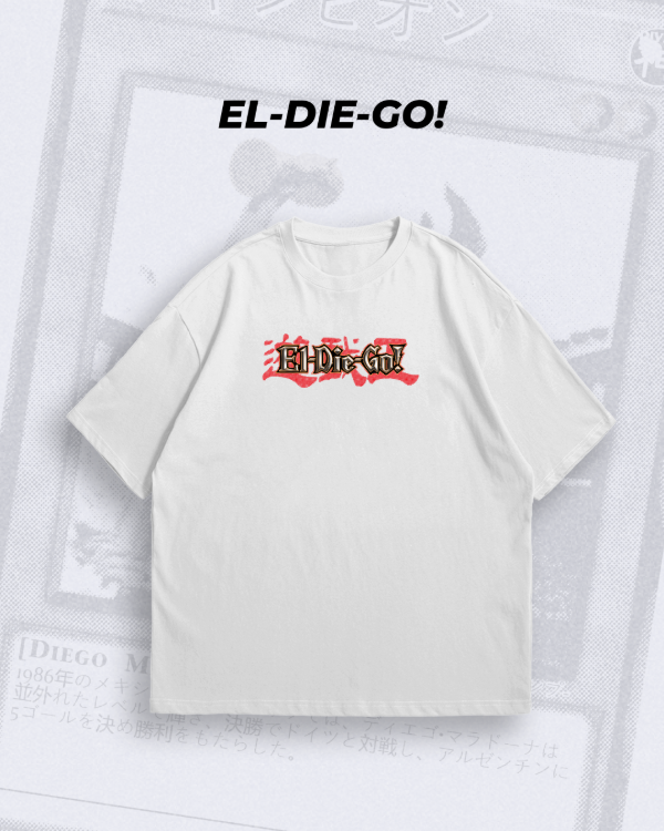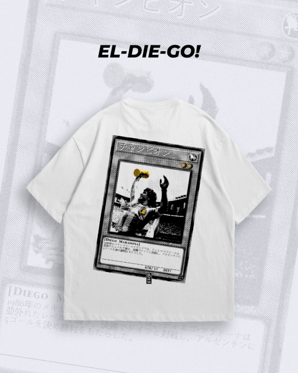 Remera blanca 100% algodón con estampado grande en la espalda y estampado tipo escudo al frente en DTF.